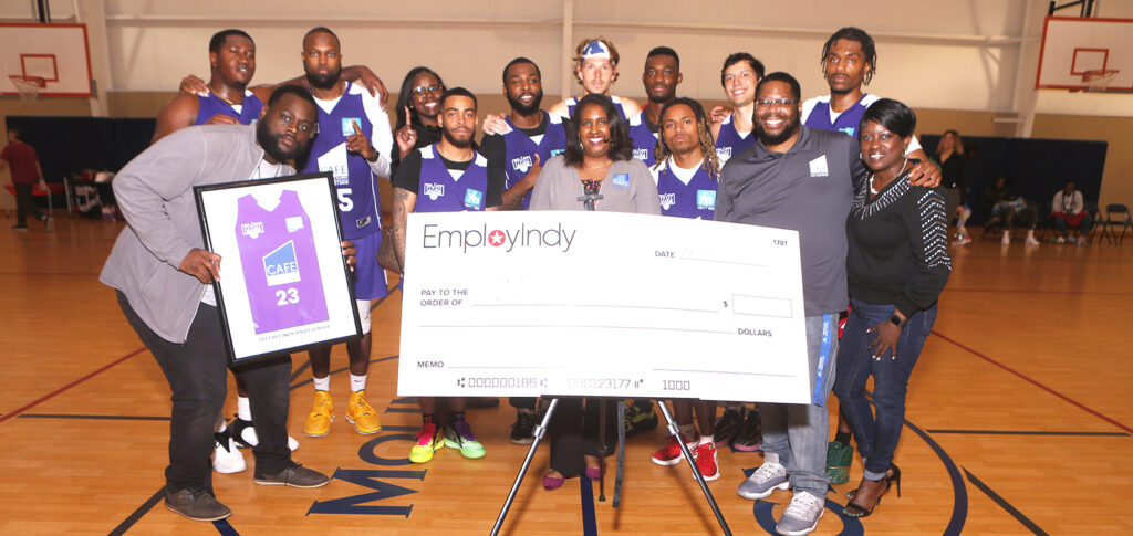 Nothing brings people together in Indiana more than a good game of basketball. When two teams tipped off the 2023 YES Indy Pivot League championship game at Mount Carmel Church in Indianapolis, the gym was filled with excitement as spectators were treated to a high-energy game. During halftime, EmployIndy’s Executive Vice President of Workforce Solutions, Rev. Rodney Francis, and District 14 Councillor, La Keisha Jackson, recognized this year’s sponsors for their support in elevating the Pivot League and local community efforts. The evening concluded with an awards ceremony where the winning team, representing the Community Alliance of the Far Eastside (CAFE), was awarded a check for $3,000.